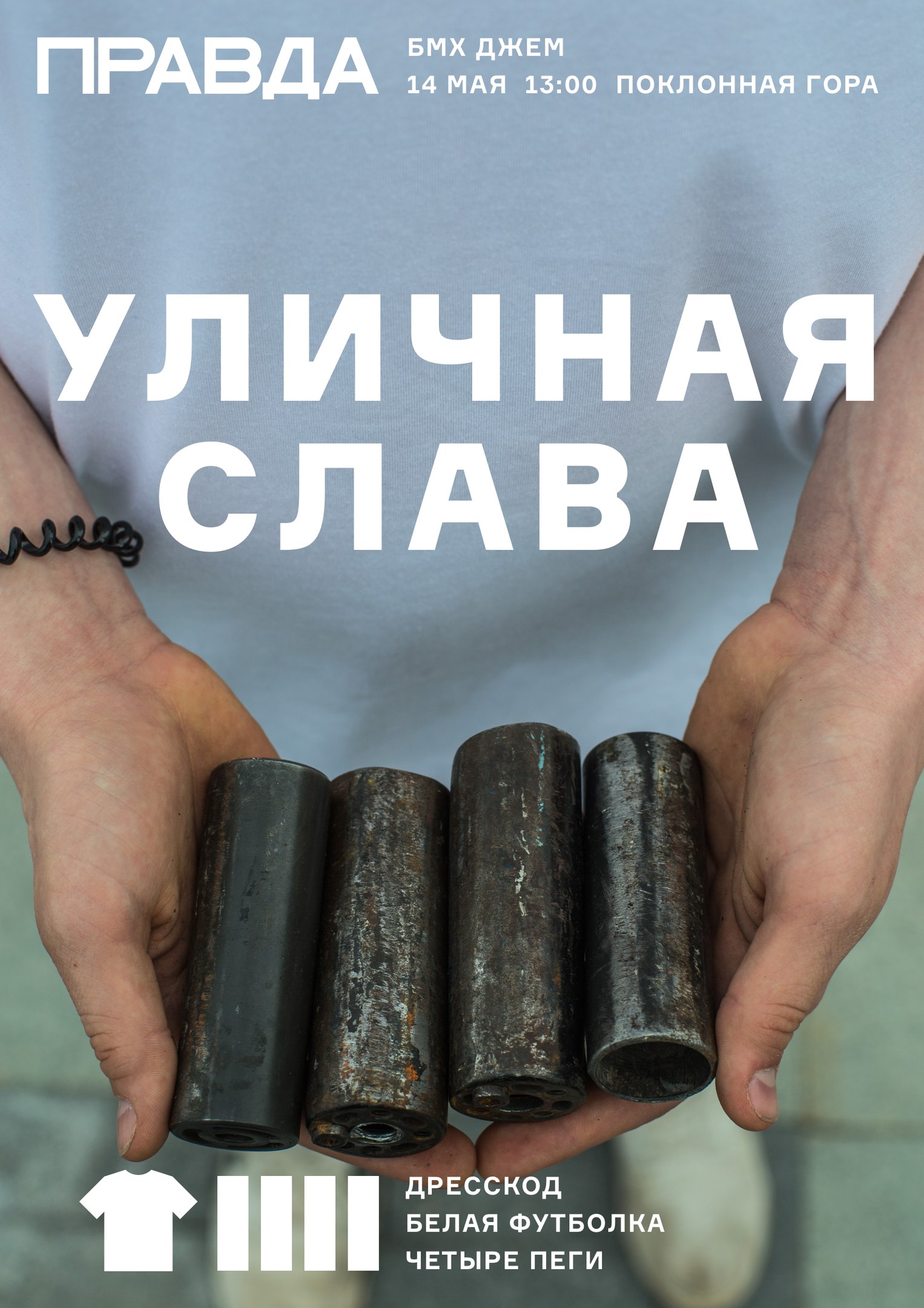 May 22d in Mytishchi, and in honor of the anniversary of the jam, we released a limited new batch of white oversized T-shirts. The jam gathered more than 200 BMXers. The prize fund was 80 thousand rubles, 30 of which were handed out as cash for tricks. Anton Shebeko became the King of Street Glory for the second time in a row as the one who performed at all the spots of the route in the coolest way.