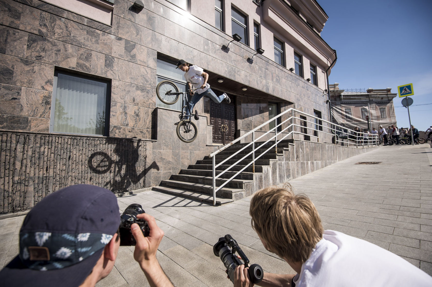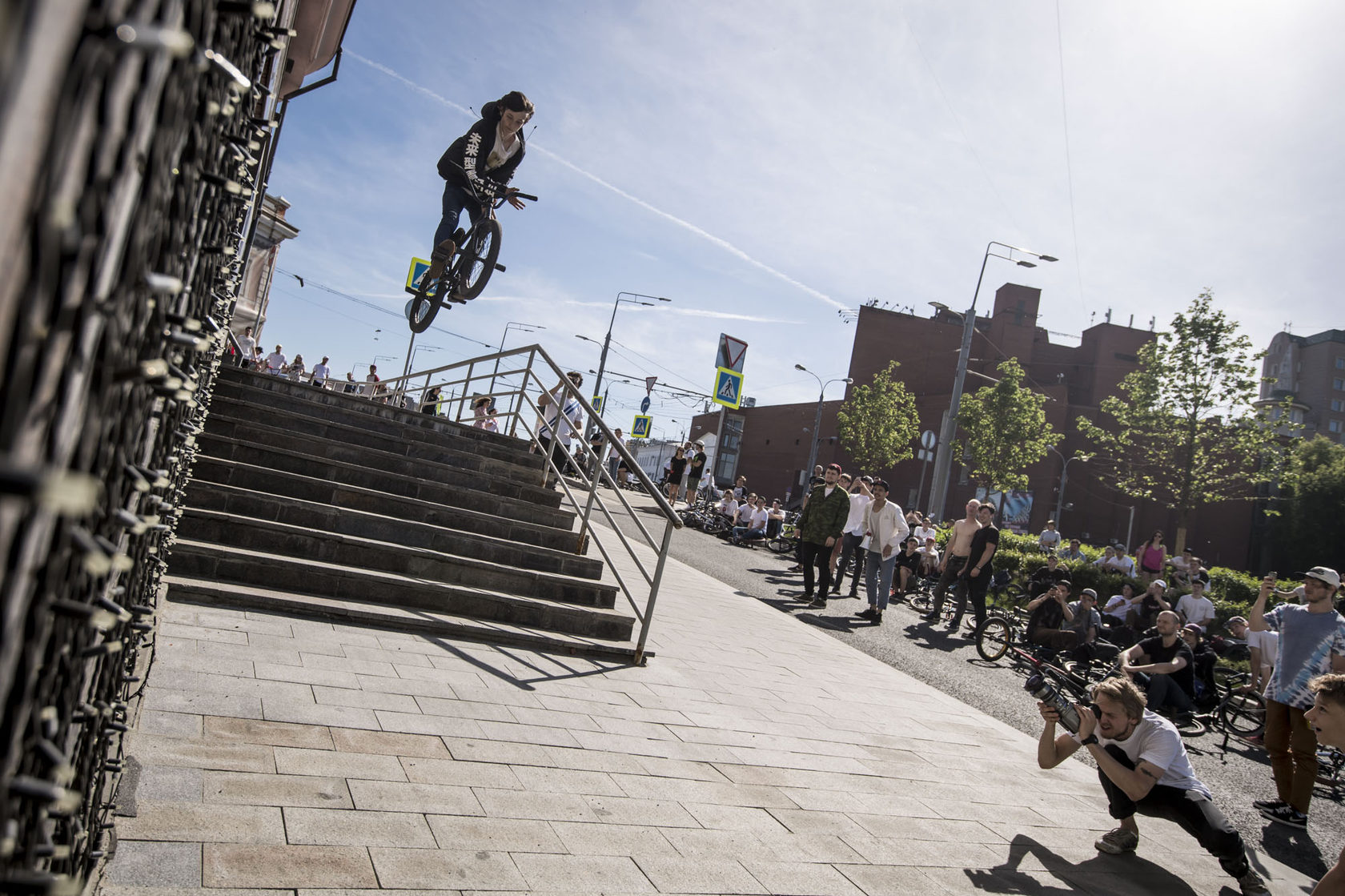 In 2018 for the first time we gathered a crowd of 200 BMXers which we did not expect at all. Suddenly we even blocked the Garden Ring, moving from one side to the other. The route was very felicitous that year – we went down from the Tagansky District Prefecture along Garden Ring to Kurskaya station and managed to catch two rails and steps with a ledge and wallride. That route took us four hours.